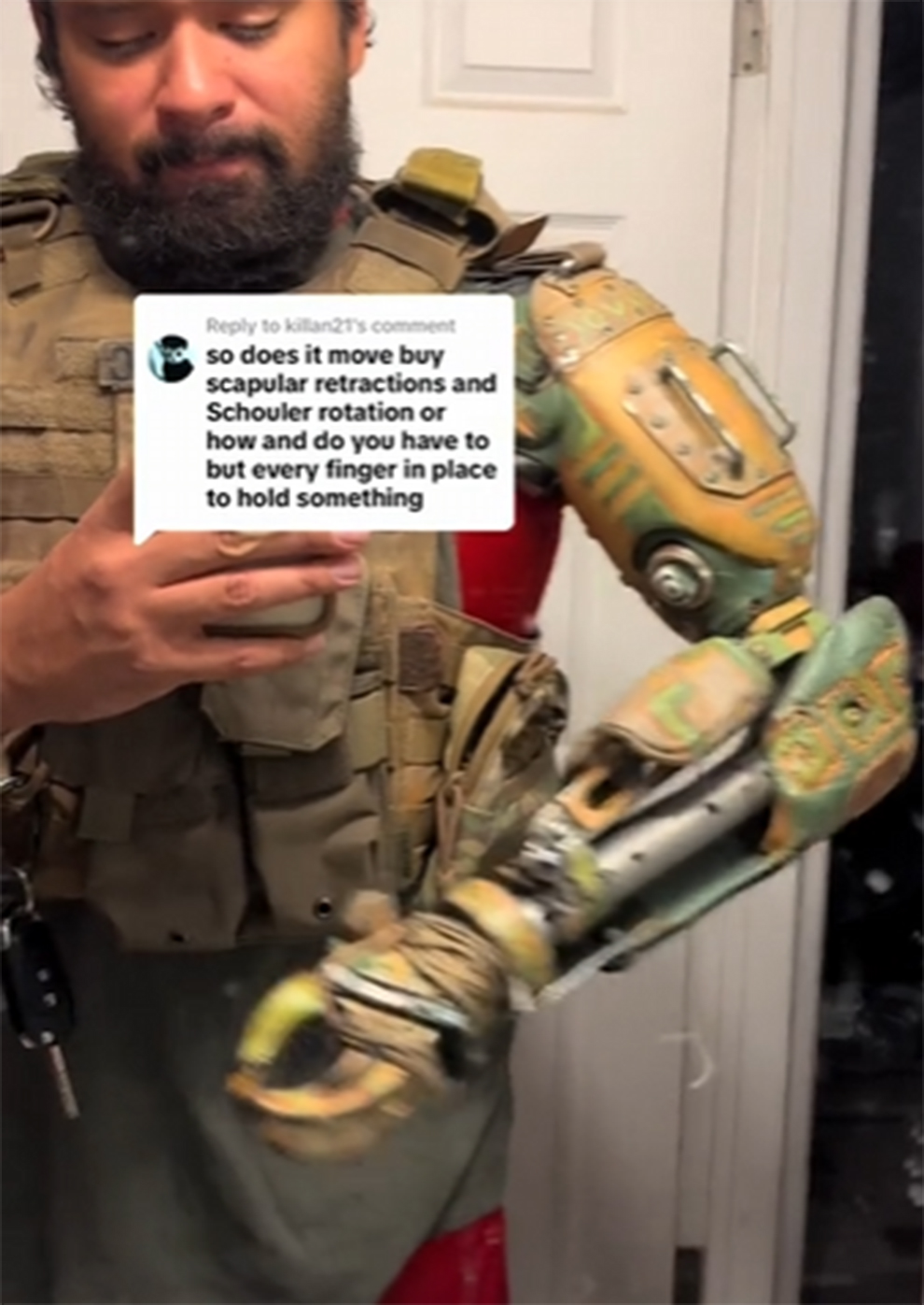 Viral έγινε στα social media ένας άνδρας που έχει το παρατσούκλι «Winter Soldier» εμπνευσμένο από τον ήρωα της Marvel, καθώς έχασε όλο το χέρι του και έβαλε προσθετικό μέλος, με το οποίο σηκώνει βάρη έως και 180 κιλά.