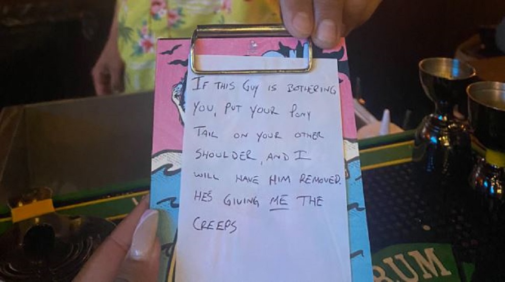 Σωτήρια ήταν η επέμβαση ενός μπάρμαν όταν αντιλήφθηκε πως κάτι πήγαινε λάθος στο μαγαζί που εργάζονταν, αφού με ένα σημείωμα βοήθησε δύο νεαρές κοπέλες να γλιτώσουν από έναν άγνωστο που τις παρενοχλούσε.