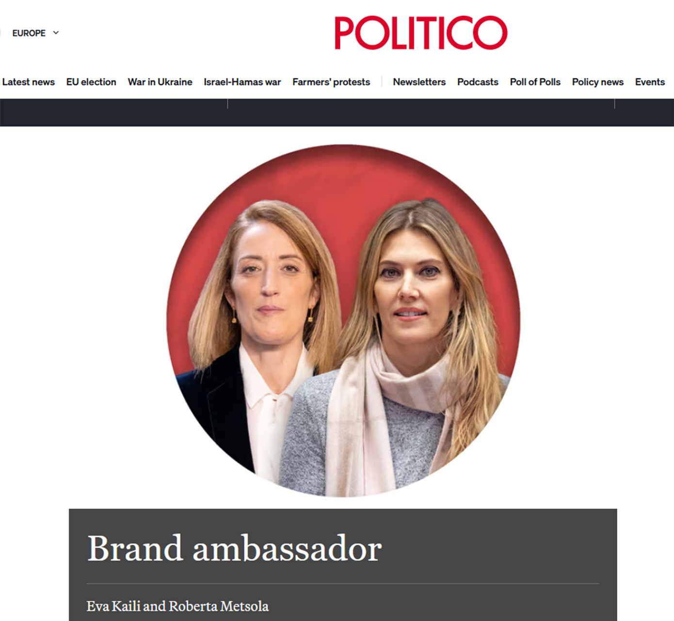 Το βραβείο για τις «καλύτερες πρέσβειρες» απένειμε στην πρόεδρο του Ευρωπαϊκού Κοινοβουλίου, Ρομπέρτα Μέτσολα, και την ελληνίδα ευρωβουλευτή, Εύα Καϊλή.