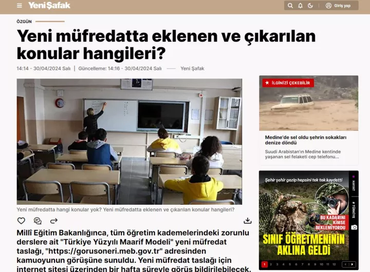 Σύμφωνα με τη φιλοκυβερνητική εφημερίδα «Yeni Safak», το νέο εκπαιδευτικό πρόγραμμα της Τουρκίας περιλαμβάνει και αναφορές στο Κυπριακό με αιχμή τη σημασία της «Τουρκικής Δημοκρατίας της Βορείου Κύπρου», όπως αναφέρεται, για την Τουρκία και τον τουρκικό κόσμο.