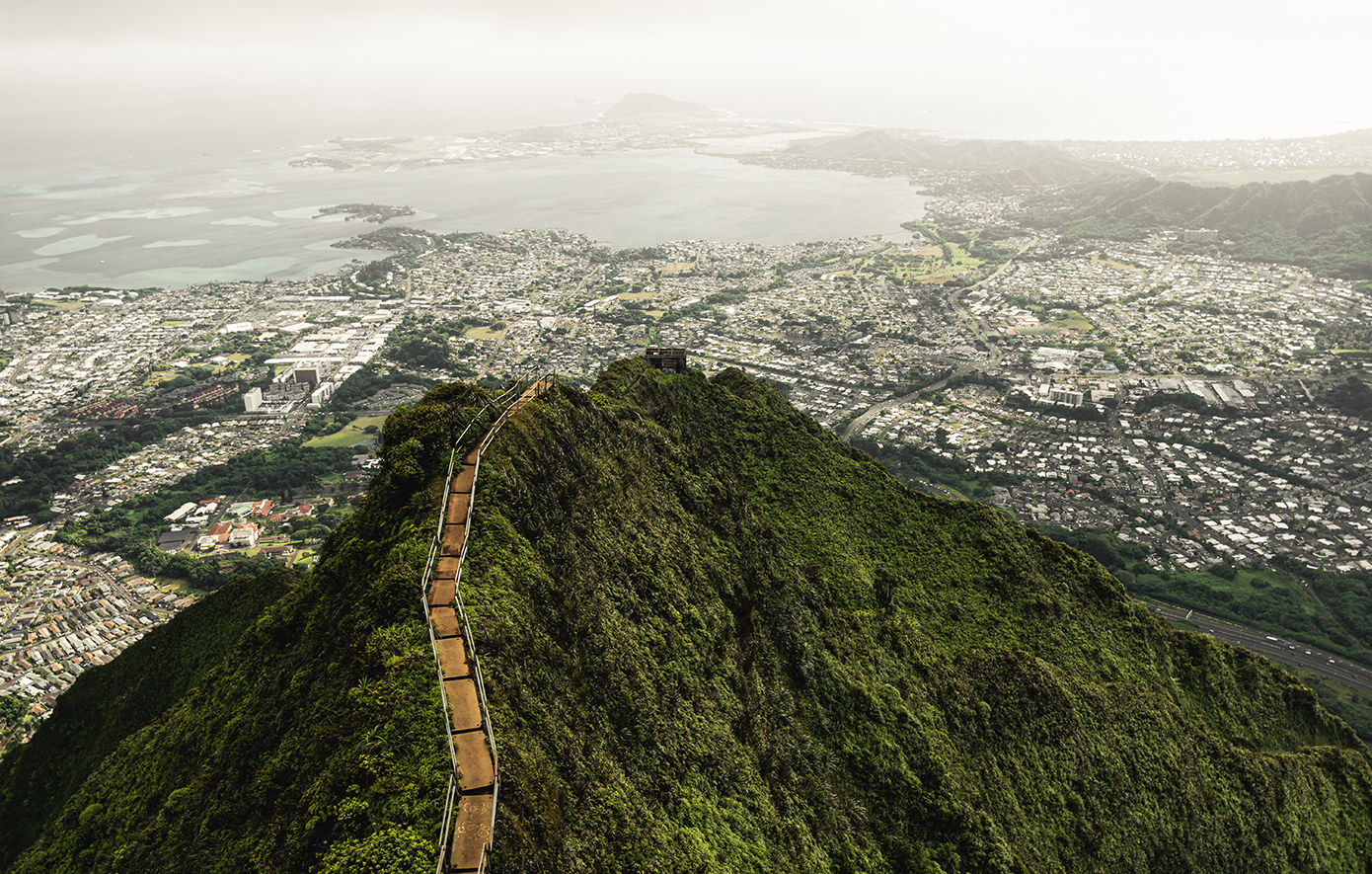 Πρόκειται για τη σκάλα Haiku Stairs, γνωστή και ως Stairway to Heaven, που βρίσκεται στη Χαβάη και κατασκευάστηκε από το αμερικανικό Πολεμικό Ναυτικό κατά μήκος της κορυφογραμμής στα βουνά Koʻolau στο νησί Oahu, ενώ περιλαμβάνει 4.000 σκαλοπάτια.