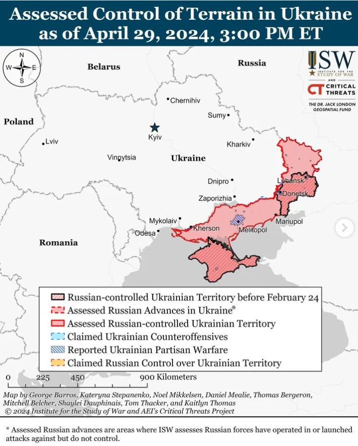 Αν και ο πρόεδρος των ΗΠΑ, Τζο Μπάιντεν, επικύρωσε πριν οχτώ ημέρες τον νόμο με τον οποίο θα χορηγηθεί βοήθεια ύψους 61 δισεκατομμυρίων δολαρίων στην Ουκρανία, αυτό ακόμη δεν έχει συμβεί, με αποτέλεσμα οι ρωσικές δυνάμεις να εισχωρούν ολοένα και πιο βαθιά στην επικράτεια της Ουκρανίας τα τελευταία 24ωρα.