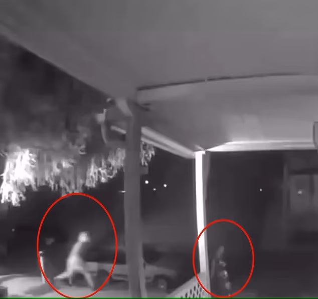 Το υλικό από τις κάμερες παρακολούθησης του γείτονα δείχνει δύο άνδρες να δραπετεύουν από το σημείο του περιστατικού ενώ το σπίτι γεμίζει με φλόγες επί της οδού Λίνκολν γύρω στις 1.30 π.μ. το πρωί της Τετάρτης.