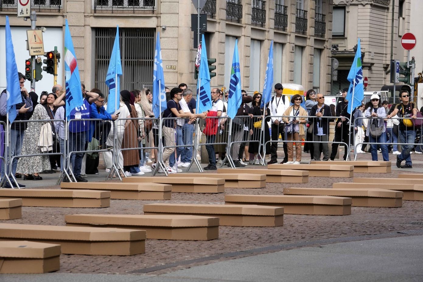 Με ψεύτικα φέρετρα γέμισε μια από τις πιο διάσημες πλατείες του Μιλάνου την Παρασκευή σε μια διαμαρτυρία που διοργάνωσε το δεύτερο μεγαλύτερο συνδικάτο της Ιταλίας για να ευαισθητοποιήσει τους πολίτες σχετικά με τους θανάτους στους χώρους εργασίας.