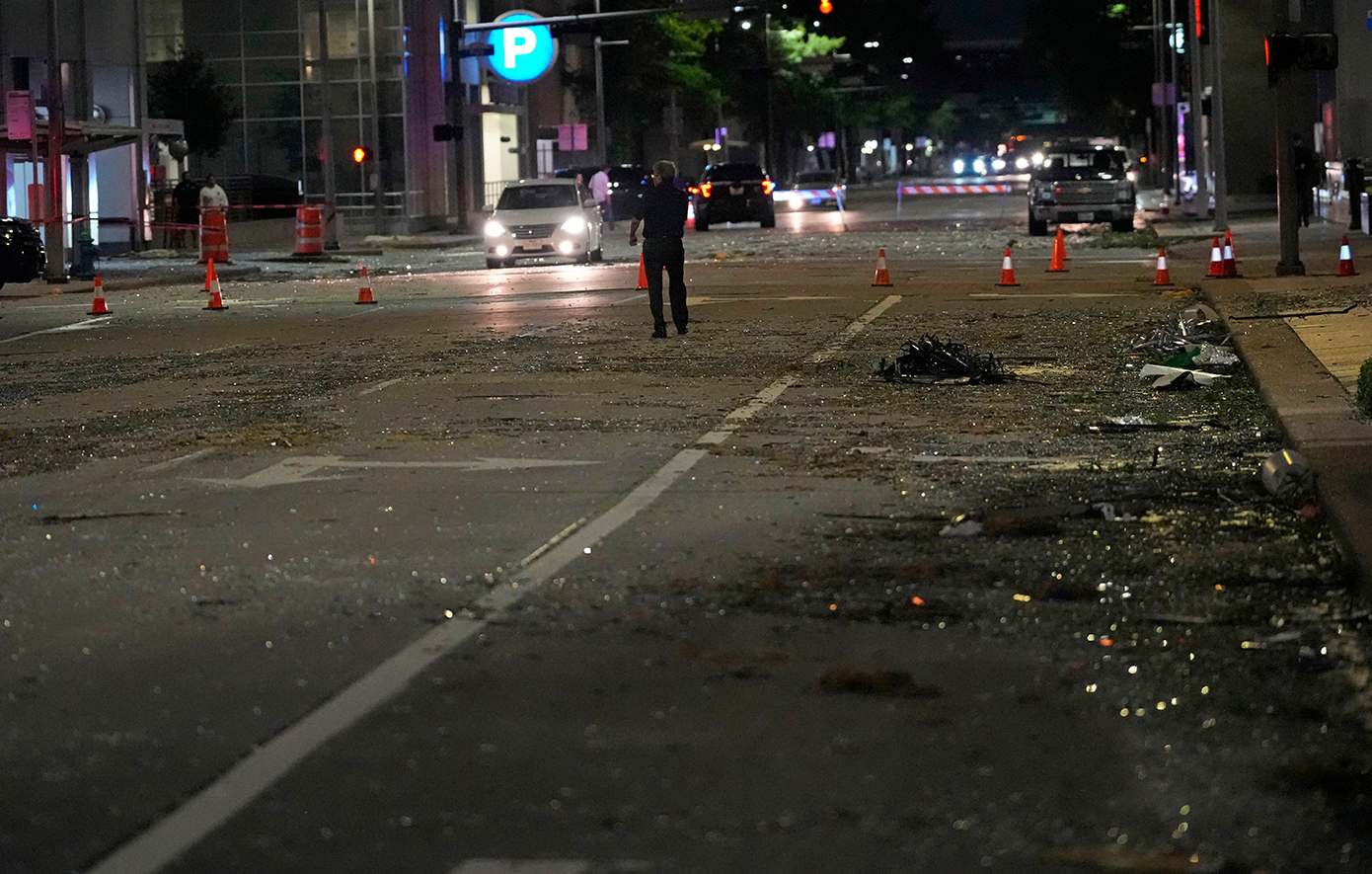 Ο δήμαρχος κάλεσε τους κατοίκους του Χιούστον να παραμείνουν σε εσωτερικούς χώρους και κυρίως να αποφύγουν να πάνε στο κέντρο της πόλης, το οποίο είναι γεμάτο συντρίμμια και σπασμένα γυαλιά.