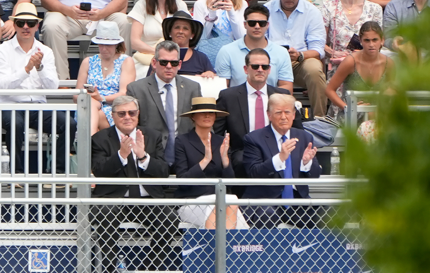 Σε εικόνες που μετέδωσε το AFPTV διακρίνεται ο πρώην πρόεδρος των ΗΠΑ, υποψήφιος στην εκλογική αναμέτρηση του Νοεμβρίου, να κάθεται δίπλα στη σύζυγό του Μελάνια σε κερκίδες στο Ουέστ Παλμ Μπιτς, κοντά στην κατοικία του Μαρ-α-Λάγκο.