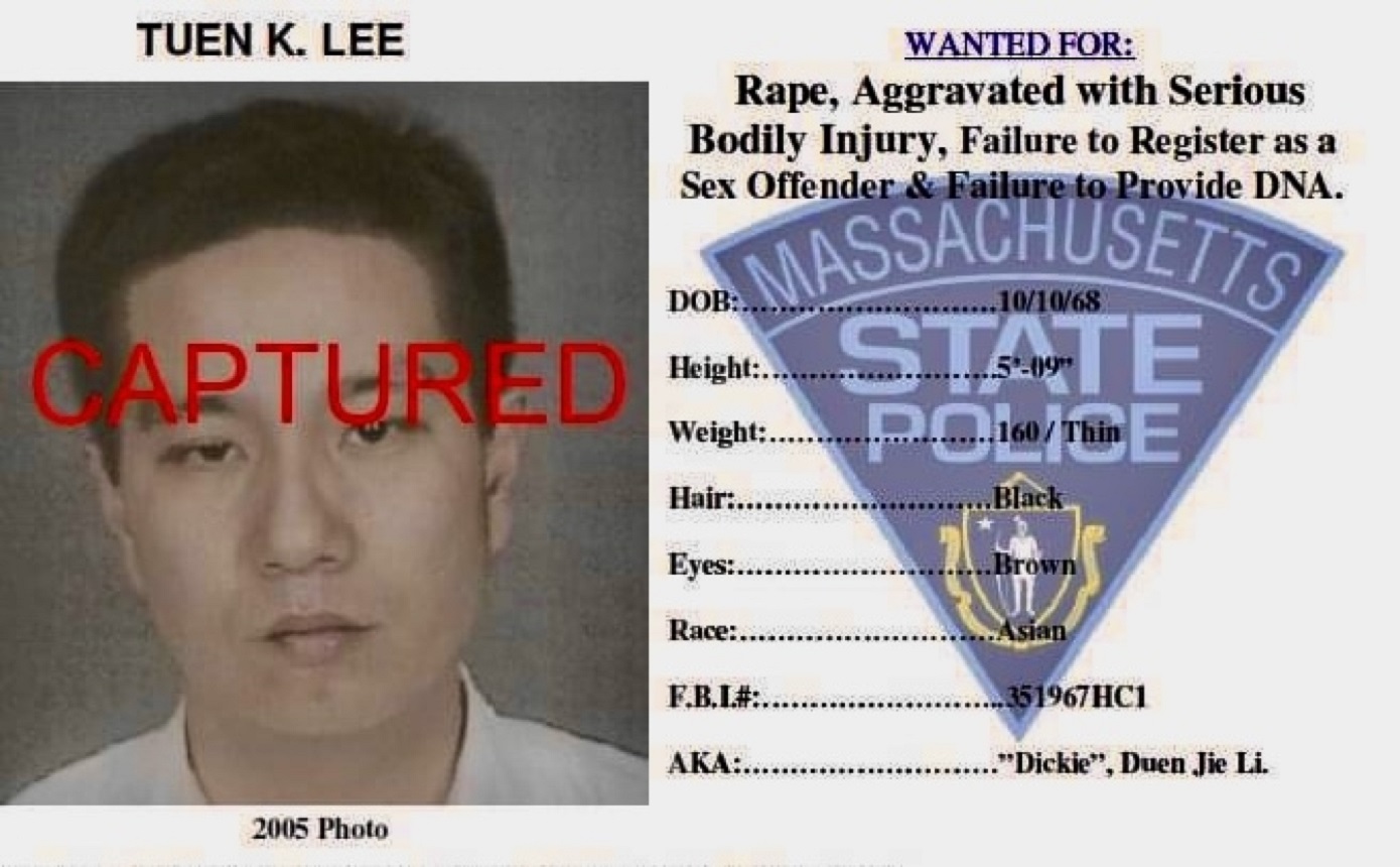 «Αστυνομικοί συνέλαβαν τον Lee την Τρίτη, όταν τον είδαν να φεύγει μαζί με μία γυναίκα από ένα σπίτι πολλών εκατομμυρίων δολαρίων, κοντά στο Ντάνβιλ, ανατολικά του Όκλαντ. Αφού σταμάτησαν το αυτοκίνητο, ο καταζητούμενος έδωσε αρχικά ψεύτικο όνομα. Όμως όταν τον πίεσαν, ομολόγησε την πραγματική του ταυτότητα. Αργότερα, έγινε η ταυτοποίησή του και με δακτυλικά αποτυπώματα. Η σύντροφός του, μετά από 15 χρόνια κοινής ζωής στην Καλιφόρνια, δεν γνώριζε ποτέ ποιος ήταν πραγματικά», αναφέρει σε ανακοίνωση της αστυνομίας της Μασαχουσέτης.