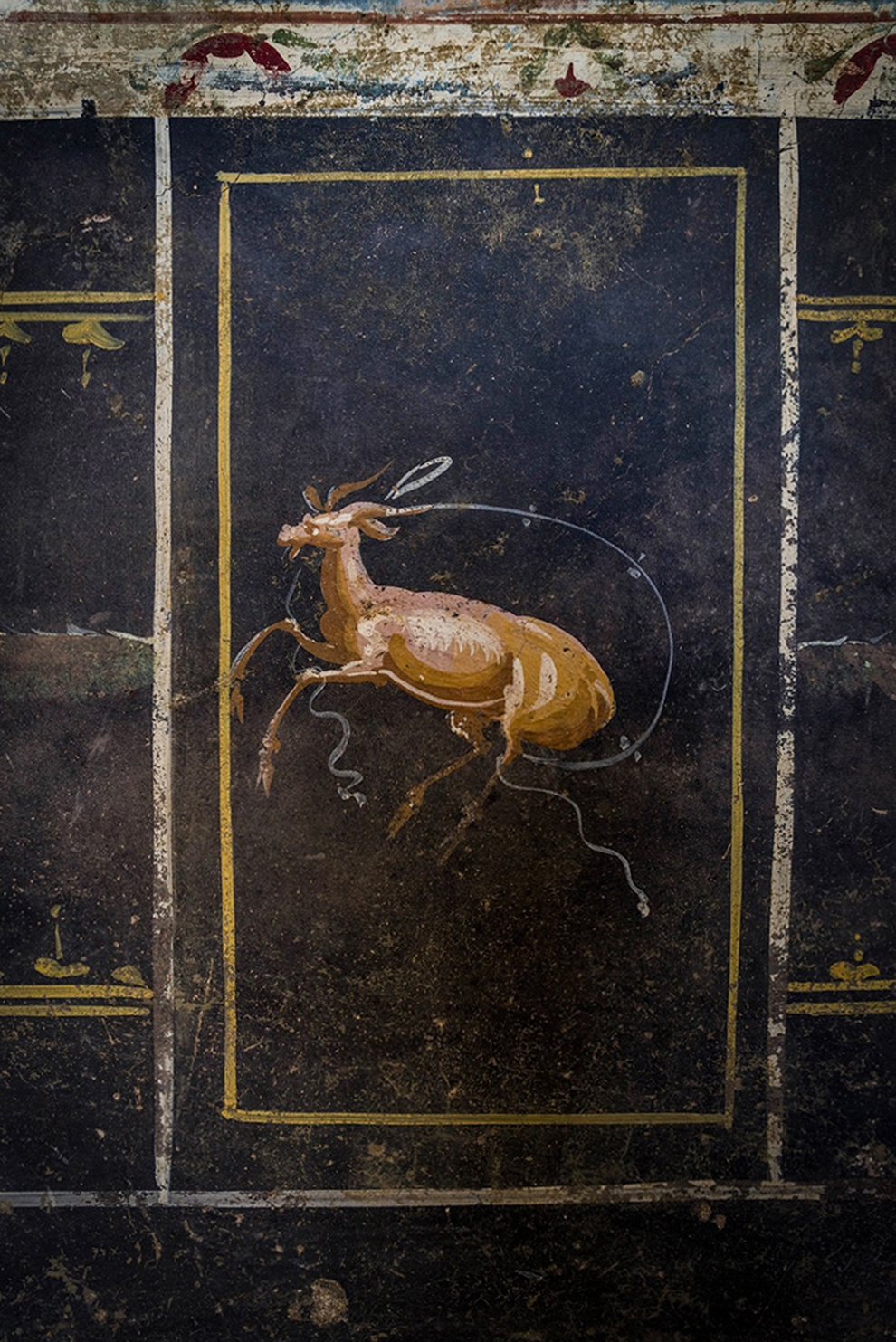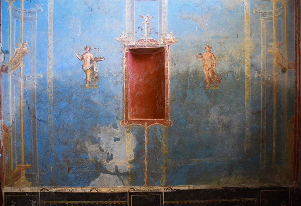 Αρχαιολόγοι πραγματοποίησαν μια νέα εντυπωσιακή ανακάλυψη στην Πομπηία, καθώς εντόπισαν ένα σπάνιο, μπλε δωμάτιο, διακοσμημένο με τοιχογραφίες, που δείχνουν γυναικείες μορφές και ιερά ζώα των Ρωμαίων.
