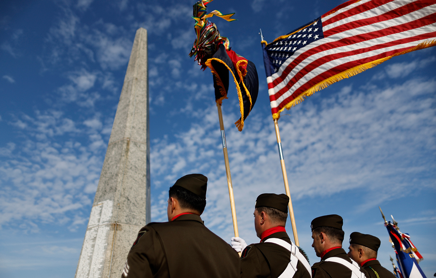«Επιστρέψατε σήμερα εδώ στην πατρίδα», είπε ο Μακρόν στους αμερικανούς βετεράνους στα αγγλικά, λέγοντας πως η Γαλλία δεν θα ξεχάσει τη θυσία τους.