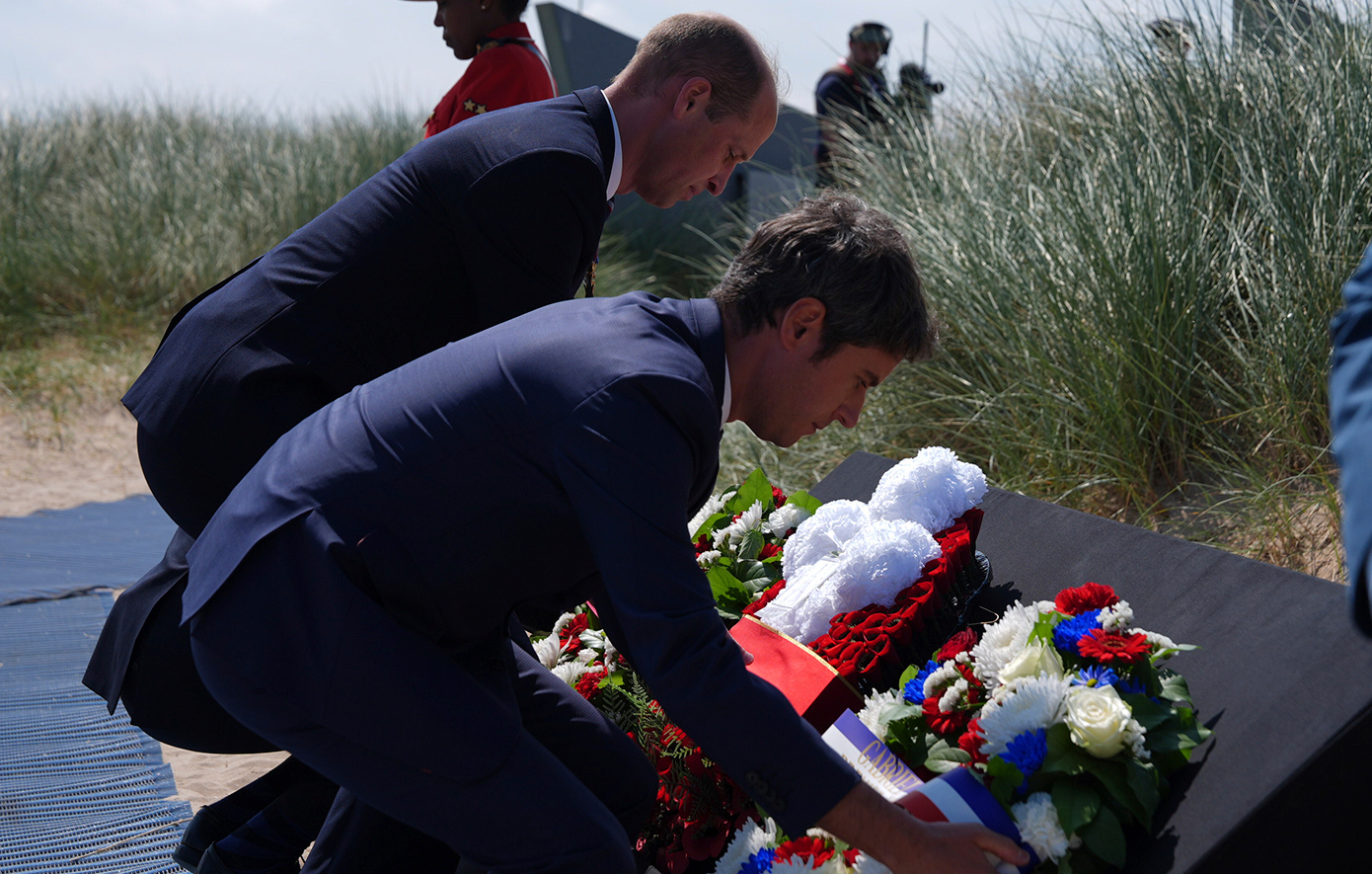 Στη συνέχεια, ο πρίγκιπας περπάτησε στην παραλία για να καταθέσει ένα στεφάνι με ένα χειρόγραφο μήνυμα που έγραφε: «Θυμόμαστε όλες τις πράξεις γενναιότητας και θυσίας των Καναδών πριν από 80 χρόνια. Για να μην ξεχνάμε. Ουίλιαμ». Πριν αποχωρήσει, σταμάτησε για να μιλήσει σε αρκετούς από τους βετεράνους.