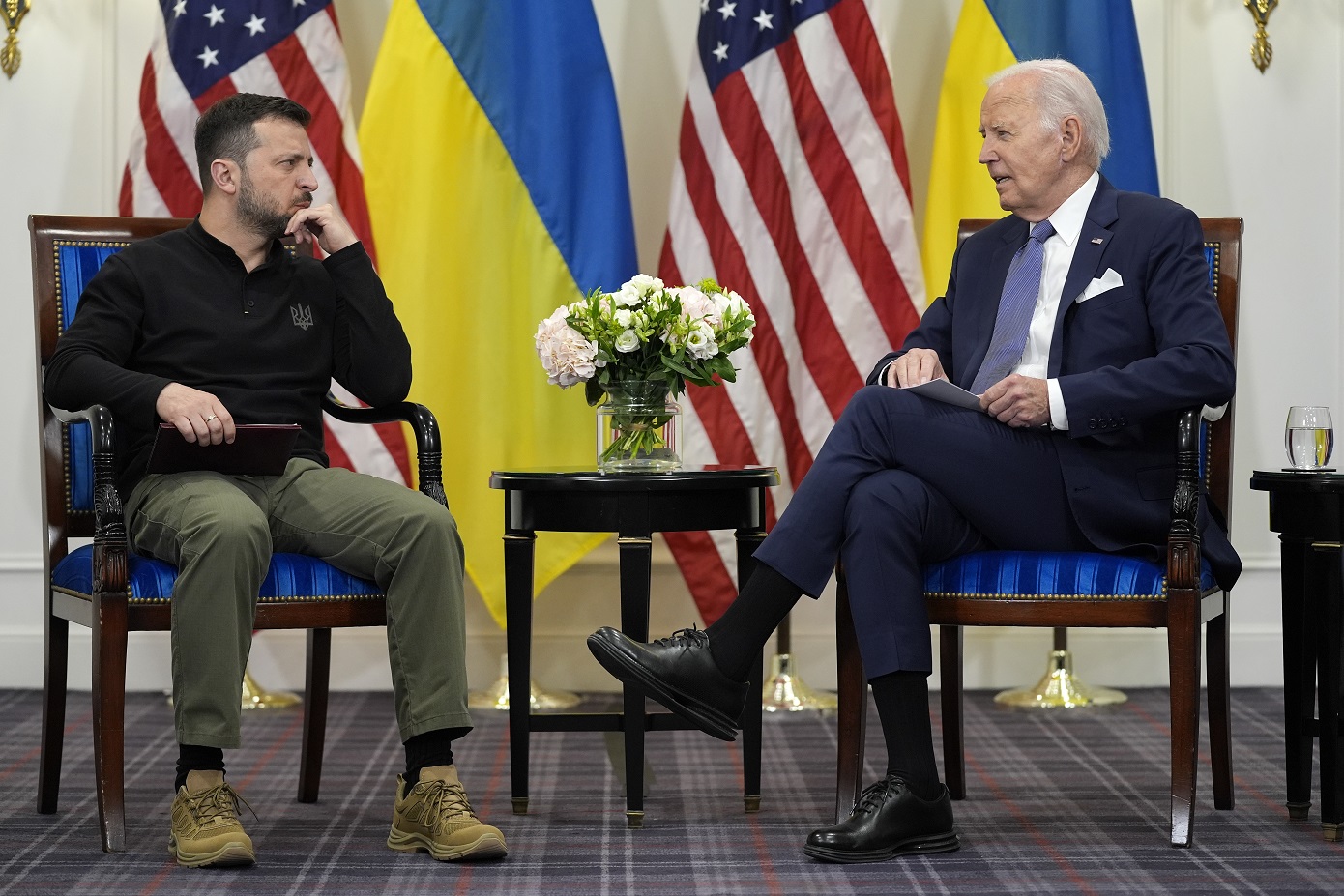 Οι δύο άνδρες θα συναντηθούν ξανά την επόμενη εβδομάδα στη σύνοδο κορυφής της G7 στην Ιταλία, καθώς τα πλούσια δυτικά κράτη θα συζητήσουν τη χρήση των ρωσικών περιουσιακών στοιχείων, που έχουν παγώσει μετά την εισβολή στην Ουκρανία, για την παροχή 50 δισεκατομμυρίων δολαρίων για την Ουκρανία.