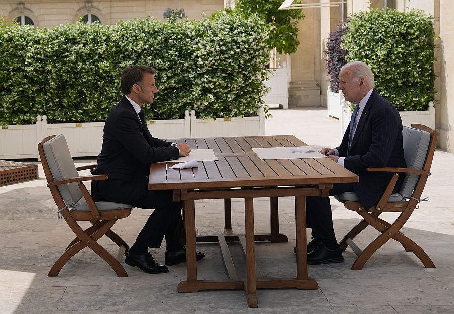 «Όταν πρόκειται για το Ιράν, κάνουμε την ίδια διαπίστωση μιας στρατηγικής κλιμάκωσης προς κάθε κατεύθυνση, είτε πρόκειται για πρωτοφανείς επιθέσεις κατά του Ισραήλ, ελιγμούς περιφερειακής αποσταθεροποίησης ή ασφαλώς το ιρανικό πυρηνικό πρόγραμμα. Οι δύο χώρες μας είναι αποφασισμένες να ασκήσουν τις απαραίτητες πιέσεις για να εξαλείψουν αυτή την τάση», δήλωσε ο Γάλλος πρόεδρος έχοντας στο πλευρό του τον Τζο Μπάιντεν στο πλαίσιο της επίσημης επίσκεψης που πραγματοποιεί στο Παρίσι ο πρόεδρος των ΗΠΑ.