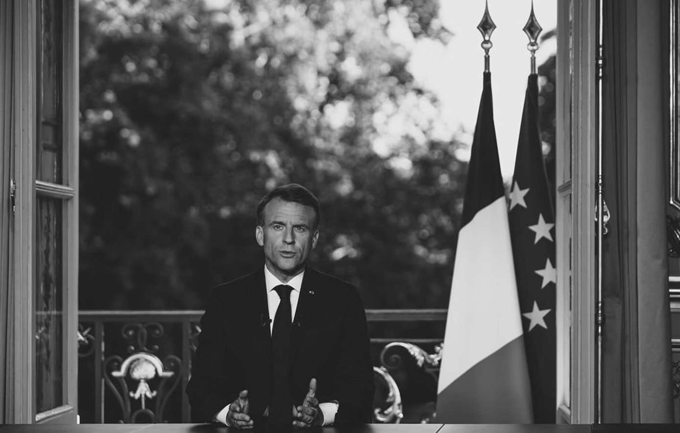 Στις φωτογραφίες της, καταγράφεται η στιγμή που ο Μακρόν ανακοινώνει στους συνεργάτες του ότι θα προκηρύξει εθνικές εκλογές.
