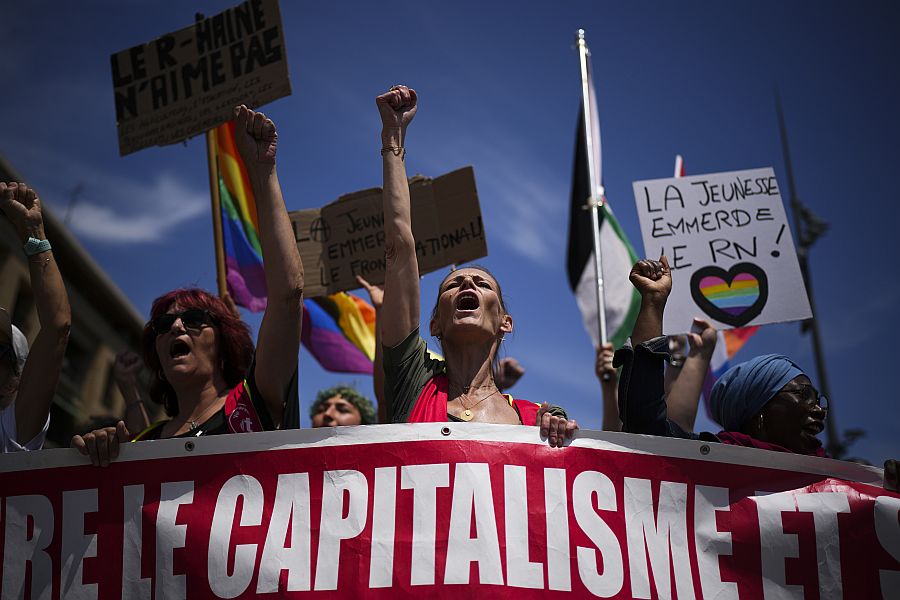 Η αστυνομία ανέφερε πως 350.000 άνθρωποι αναμένεται να συμμετάσχουν σε πορείες και 21.000 αστυνομικοί έχουν κινητοποιηθεί αφότου συνδικάτα, φοιτητικές οργανώσεις και οργανώσεις προάσπισης των ανθρωπίνων δικαιωμάτων κάλεσαν σε συλλαλητήρια κατά του αντιμεταναστευτικού, ευρωσκεπτικιστικού RN πριν από τις επερχόμενες βουλευτικές εκλογές στη Γαλλία.