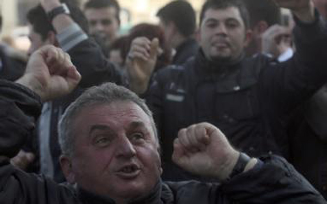 Μικρή ομάδα διαδηλωτών άρχισε να πετά πέτρες κι άλλα αντικείμενα κατά των αστυνομικών, που έχουν δημιουργήσει κλοιό γύρω από το κυβερνητικό μέγαρο. Η αστυνομία απάντησε με δακρυγόνα και χρήση αντλιών νερού για να διασπάσει το μέτωπο των διαδηλωτών και, σύμφωνα με το πρακτορείο ειδήσεων Reuters, τραυματίστηκε ένας διαδηλωτής κι ένας αστυνομικός.