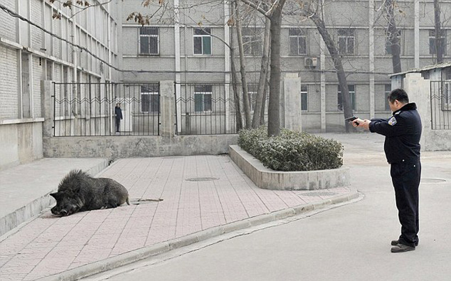 Το δρόμο του φαίνεται πως έχασε ένα αγριογούρουνο στην Κίνα και βρέθηκε στον προαύλιο χώρο ενός νοσοκομείου προκαλώντας τρόμο στον κόσμο.