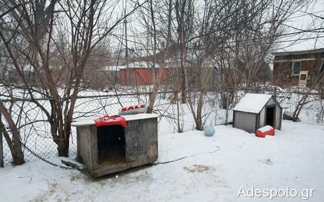 Τα μπωλ των σκύλων, οι κουβάδες με το νερό και οι άδειες κονσέρβες σκύλων ήταν όλα παγωμένα από το χιόνι, δείχνοντας μια εικόνα εγκατάλειψης.