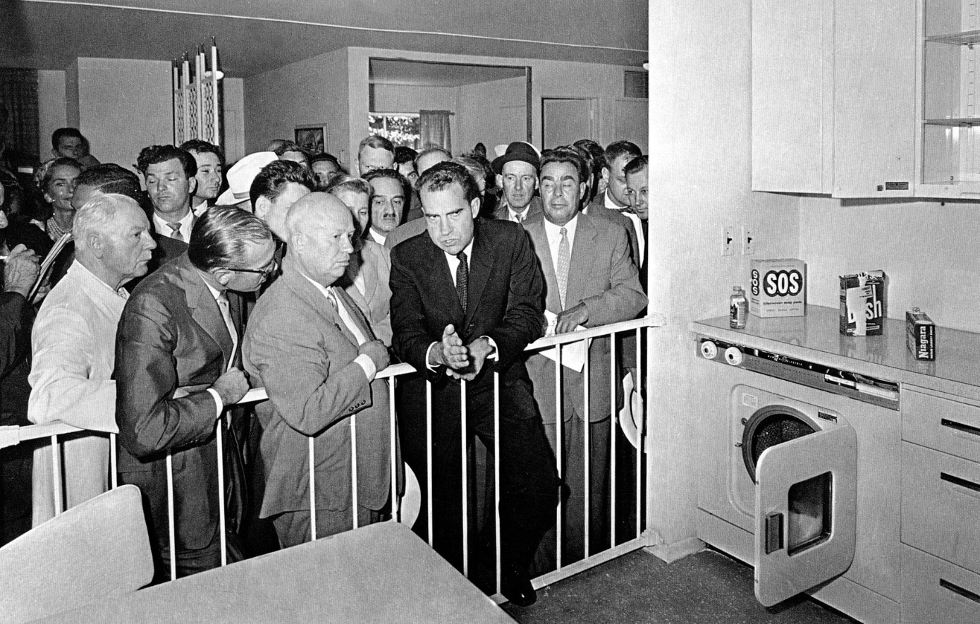 1959: Ο Αμερικανός αντιπρόεδρος Ρίτσαρντ Νίξον ενόσω ξεναγείται στην Αμερικανική Εθνική Έκθεση στη Μόσχα, συναντά τον Νικήτα Χρουστσόφ, με τον οποίο ανταλλάσσουν απόψεις για τα οφέλη του κομμουνισμού και του καπιταλισμού. Φόντο αποτελεί το σκηνικό μιας κουζίνας, που θα δώσει και το όνομα στην ιστορική συνάντηση, η οποία θα μείνει γνωστή ως η «αντιπαράθεση της κουζίνας» («kitchen debate»).