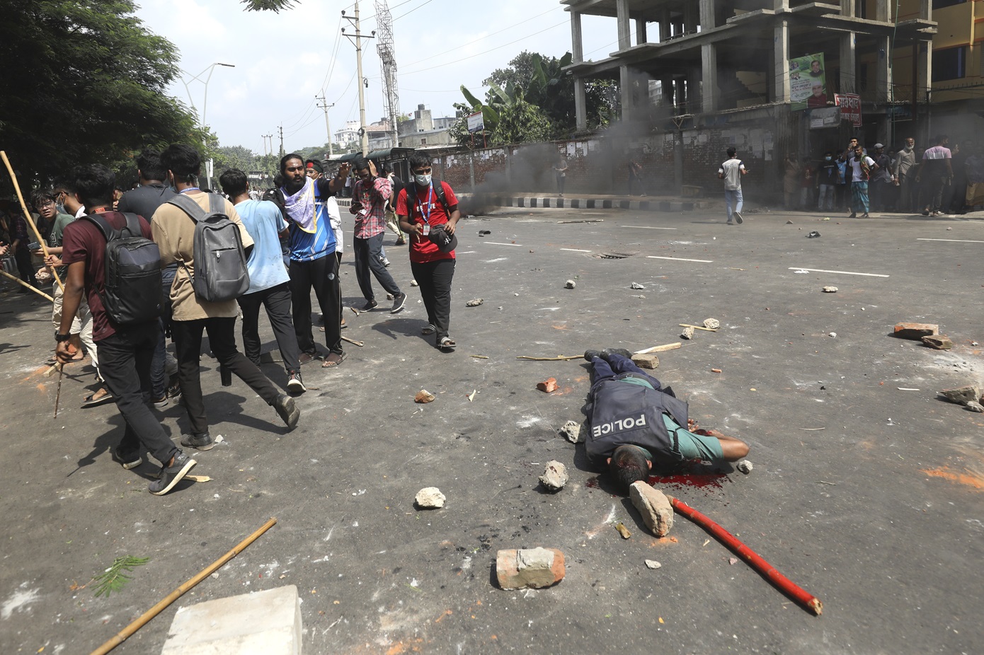 Πέρα από την αστυνομική καταστολή, διαδηλωτές και φοιτητές της οργάνωσης της νεολαίας του κόμματος της πρωθυπουργού Χασίνα, του Λαϊκού Συνδέσμου (Awami League), ενεπλάκησαν σε συγκρούσεις με πέτρες, τούβλα, ρόπαλα…