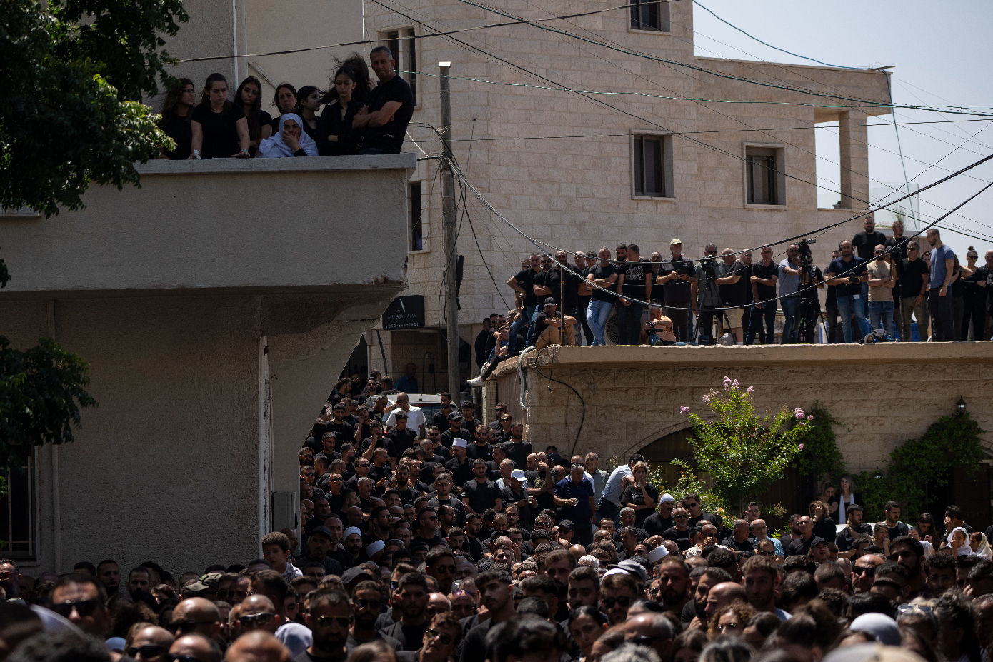 Πρόσωπα σκυθρωπά και δακρυσμένα στο Ματζντάλ Σαμς. Χιλιάδες Δρούζοι έφθασαν σήμερα στους απόκρημνους δρόμους της μικρής πόλης για να παραστούν στην κηδεία των παιδιών που σκοτώθηκαν χθες από ρουκέτα που έπεσε στα Υψίπεδα του Γκολάν, μεγάλο μέρος των οποίων είναι προσαρτημένο στο Ισραήλ.