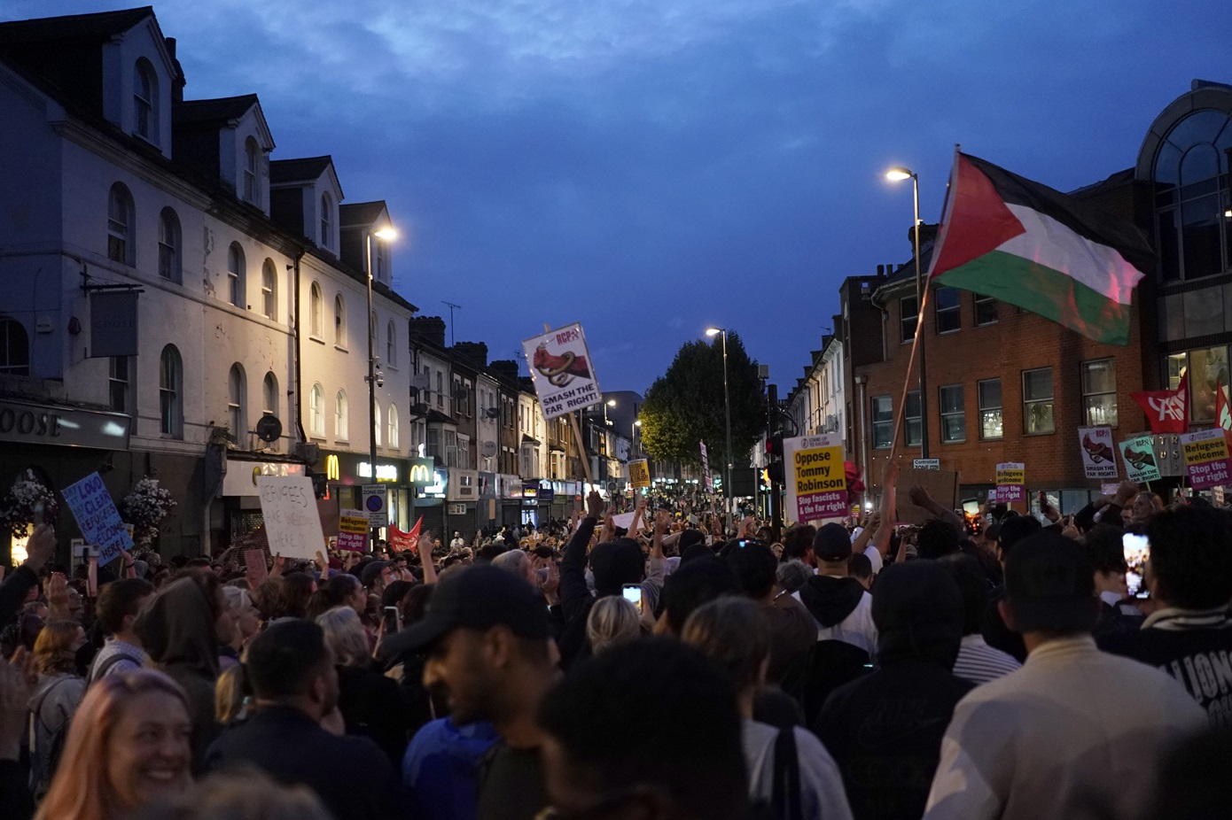 Στο Λονδίνο, περίπου 1.300 αστυνομικοί ήταν σε ετοιμότητα για το βράδυ της Τετάρτης. Στο Walthamstow, χιλιάδες άνθρωποι φώναζαν «Ποιανού είναι οι δρόμοι; Οι δικοί μας δρόμοι» και «οι πρόσφυγες είναι ευπρόσδεκτοι εδώ», ενώ ένας άνδρας χτυπούσε ενθουσιωδώς το τύμπανό του.
