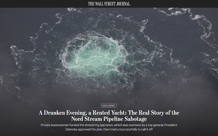 Το παρασκήνιο πίσω από το σαμποτάζ στον Nord Stream αποκαλύπτει η αμερικανική εφημερίδα Wall Street Journal αναφέροντας ότι ιδιώτες επιχειρηματίες χρηματοδότησαν την επιχείρηση, την οποία επέβλεπε ένας κορυφαίος στρατηγός, ενώ ο Ζελένσκι ενέκρινε το σχέδιο και στη συνέχεια προσπάθησε ανεπιτυχώς να το ακυρώσει.