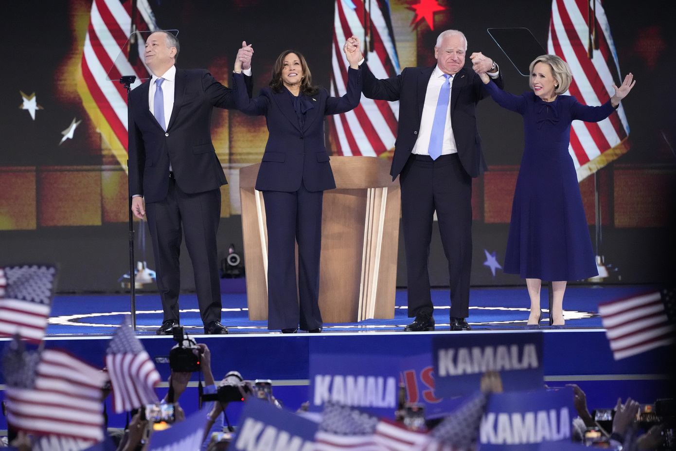 «Στο όνομα όλων των Αμερικανών, ανεξαρτήτως κόμματος, φυλής, φύλου ή γλώσσας, όπως αυτοί με τους οποίους μεγάλωσα, που δουλεύουν σκληρά, που προσπαθούν να κάνουν πραγματικότητα τα όνειρά τους, που προσέχουν ο ένας τον άλλο, όλων αυτών που η ιστορία τους μπορούσε να γραφτεί μόνο στο σπουδαιότερο έθνος του κόσμου, δέχομαι την υποψηφιότητα που μου αναθέτετε για να γίνω πρόεδρος των ΗΠΑ», δήλωσε η αντιπρόεδρος Χάρις συγκινημένη στο ενθουσιασμένο πλήθος των συνέδρων ενώ ευχαρίστησε τον σύζυγό της και του ευχήθηκε «καλή 10η επέτειο γάμου».