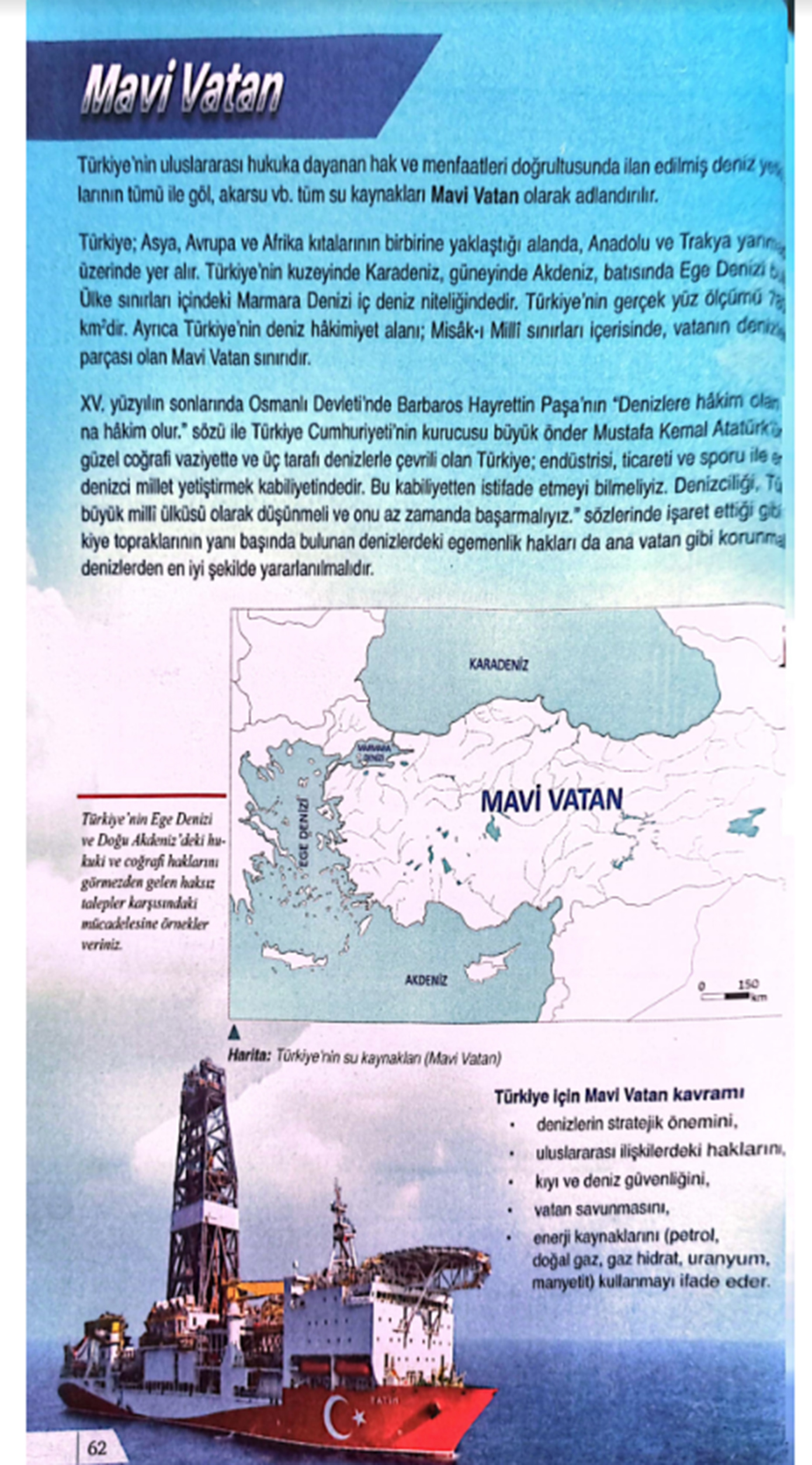 Η διδασκαλία της «Γαλάζιας Πατρίδας» (Mavi Vatan) ξεκίνησε στα σχολεία της Τουρκίας και εντάχθηκε στο μάθημα της Γεωγραφίας της 9ης τάξης.