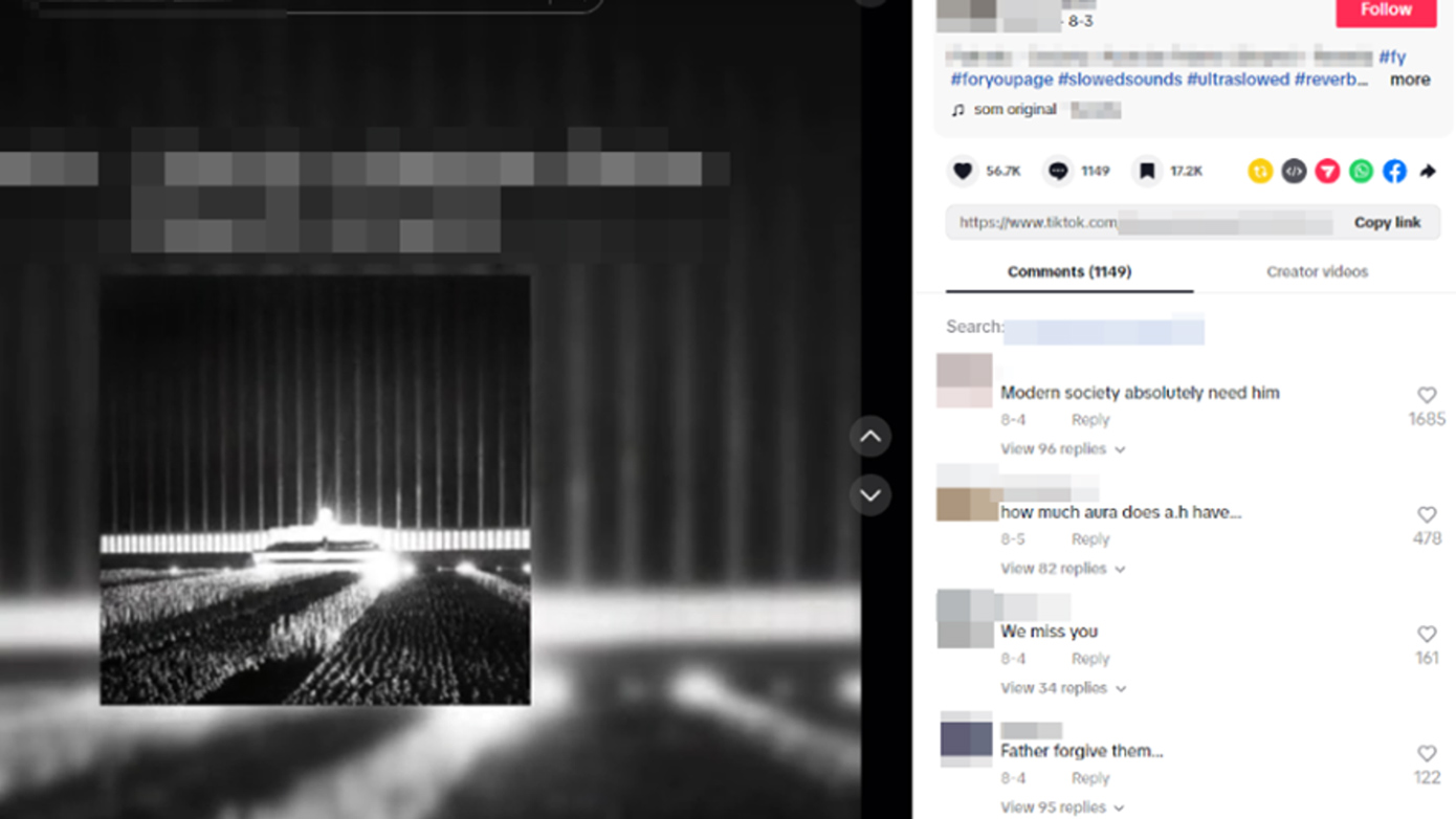 Η αναζήτηση στο TikTok μεταξύ 2 και 3 Σεπτεμβρίου αποκάλυψε 50.023 δημοσιεύσεις που χρησιμοποιούν ήχους που ενσωματώνουν ομιλίες των ναζί, συμπεριλαμβανομένου του Αδόλφου Χίτλερ και του επικεφαλής προπαγανδιστή του, Τζόζεφ Γκέμπελς.