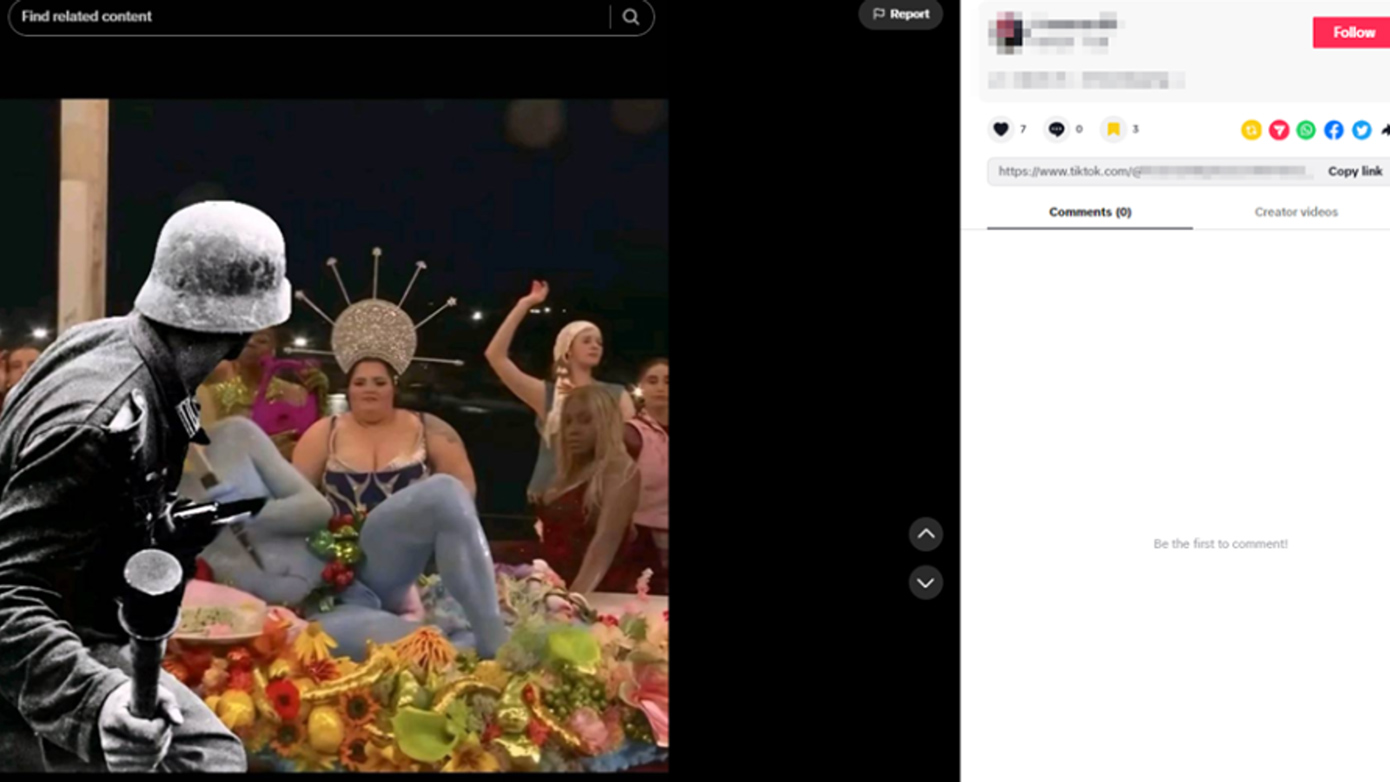 Το Sky News ανακάλυψε ότι οι ναζιστικές ομιλίες και τα εμβατήρια έχουν μετατραπεί σε δημοφιλείς «ήχους» (ο ήχος που χρησιμοποιείται ως βάση για πολλά βίντεο) στο TikTok και χρησιμοποιούνται ως soundtracks σε τουλάχιστον 72.534 δημοσιεύσεις.