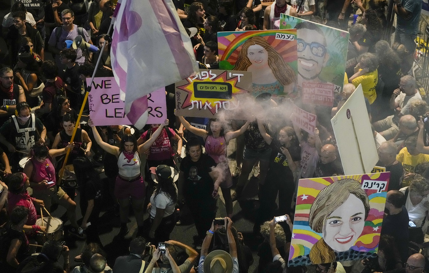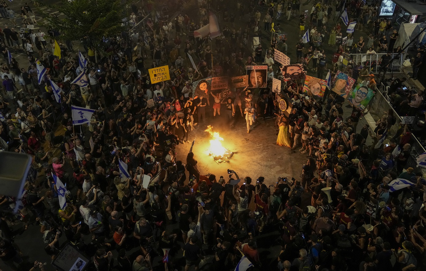 Χιλιάδες Ισραηλινοί βγήκαν για ακόμη μια φορά στους δρόμους στο Τελ Αβίβ το βράδυ του Σαββάτου, για να καταγγείλουν πως δεν κλείνεται συμφωνία ανάμεσα στην κυβέρνηση του Ισραήλ και τη Χαμάς που θα επιτρέψει να επιστρέψουν οι δεκάδες όμηροι που παραμένουν στη Λωρίδα της Γάζας στον θύλακο από την 7η Οκτωβρίου 2023.