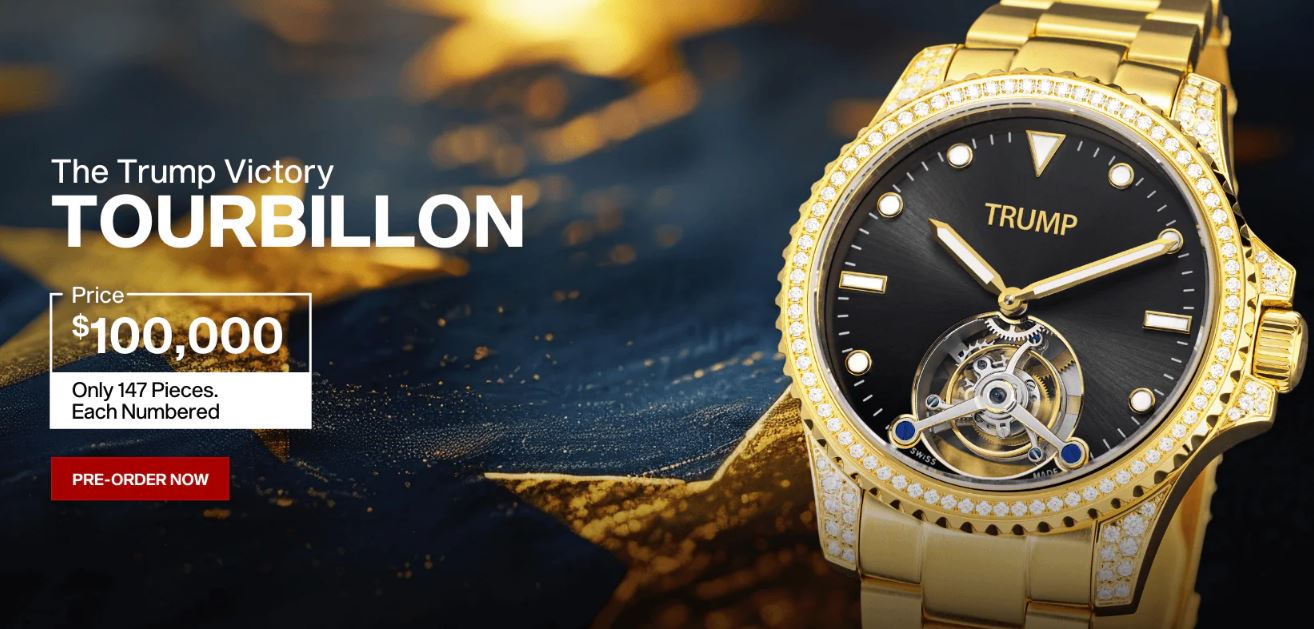 «Θα τα λατρέψετε. Θα ήταν ένα υπέροχο χριστουγεννιάτικο δώρο», ανέφερε ο Τραμπ σε ανάρτησή του στο Truth Social. Ορισμένα από τα πιο ακριβά ρολόγια που παρουσιάζονται στη συλλογή κοστίζουν μέχρι και 100.000 δολάρια.