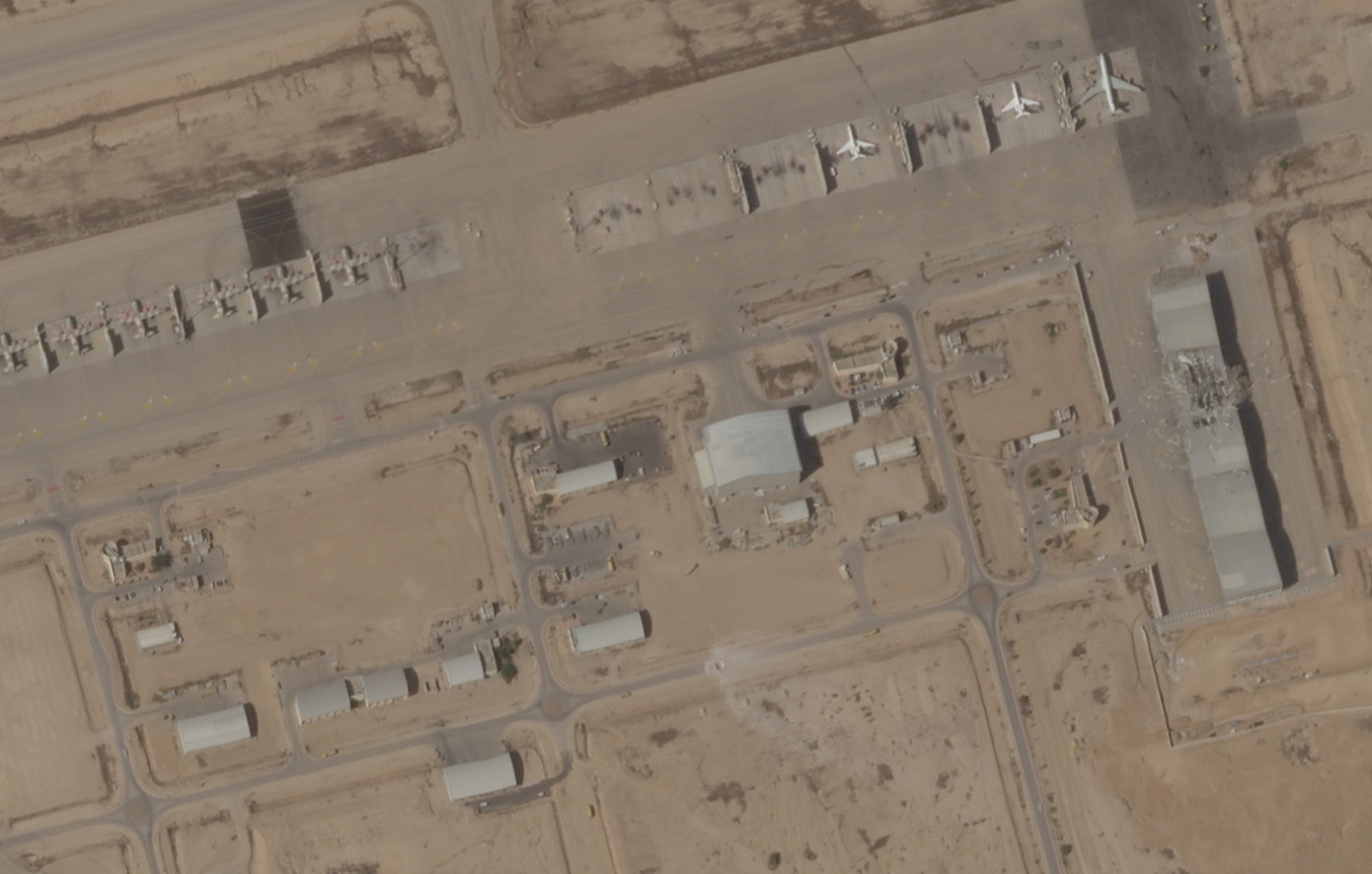 Στη βάση δεν υπάρχουν ενδείξεις εκτεταμένων ζημιών, παρά μόνο σε δύο υπόστεγα αεροσκαφών. Ένα από αυτά καταστράφηκε ολοσχερώς. Τα πυραυλικά χτυπήματα της 1ης Οκτωβρίου δημιούργησαν δύο κρατήρες στο σημείο.