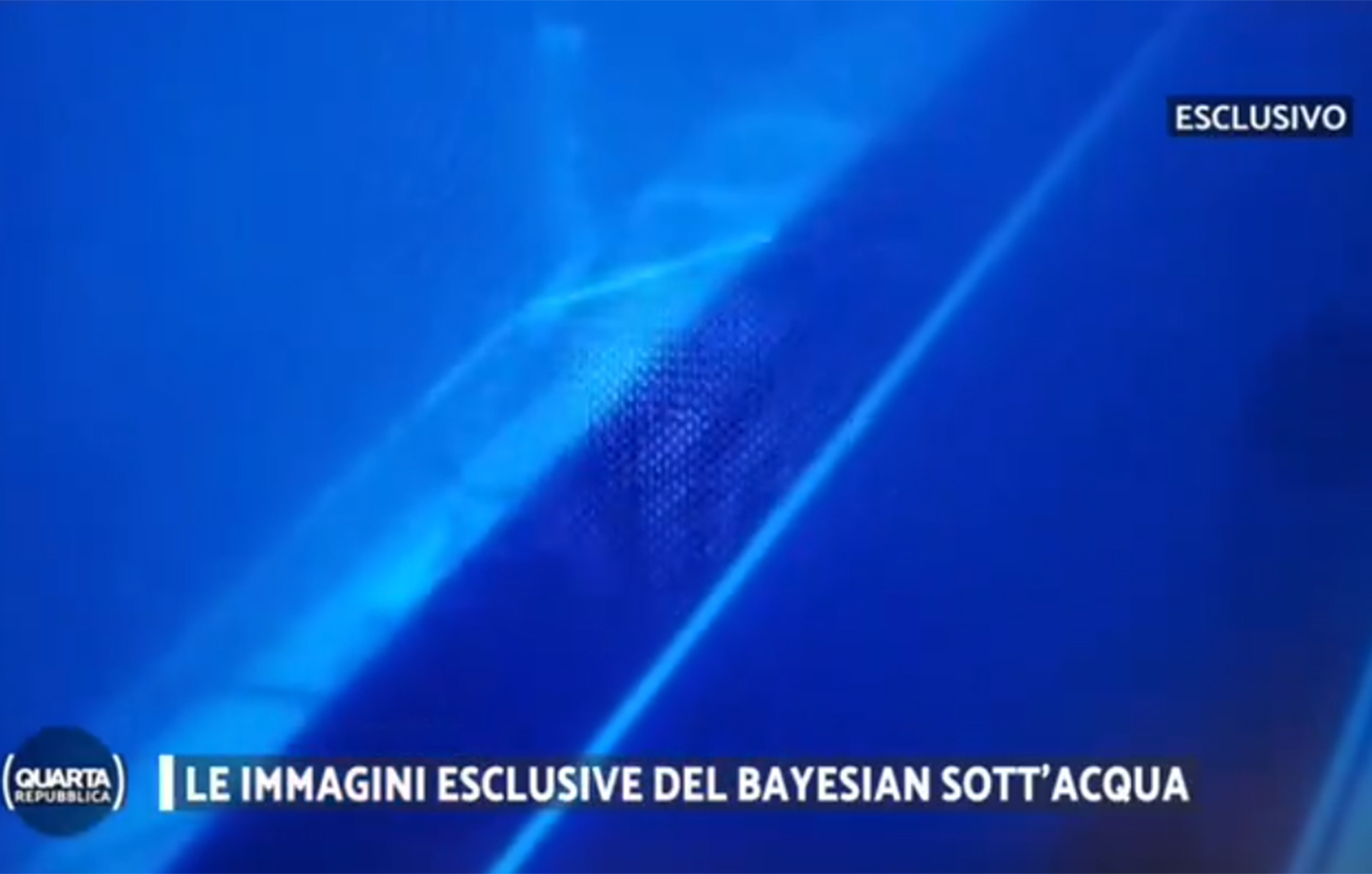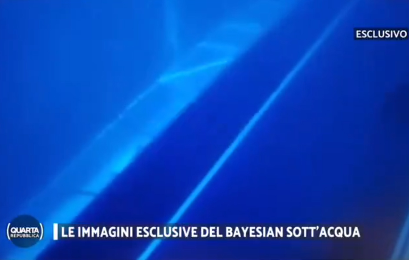 Κυκλοφόρησαν οι πρώτες εικόνες του Bayesian, μετά τη βύθιση του σούπερ γιοτ αξίας 30 εκατομμυρίων λιρών πριν από δύο μήνες, το οποίο έγινε υγρός τάφος για επτά ανθρώπους. Το σκάφος βρίσκεται σε βάθος 49 μέτρων, «ξαπλωμένο» στη δεξιά του πλευρά, ενώ φυσαλίδες από τη φιάλη οξυγόνου ενός δύτη διακρίνονται να ανεβαίνουν από το πλάι σε ένα βίντεο που διέρρευσε στην ιταλική ερευνητική τηλεοπτική εκπομπή Quarta Repubblica και μεταδόθηκε λίγες ημέρες μετά την έναρξη των ανακρίσεων για τέσσερις από τους επτά ανθρώπους που έχασαν τη ζωή τους.