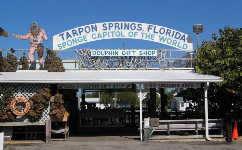 Οι πρώτοι Έλληνες μετανάστες έφτασαν στην πόλη κατά τη δεκαετία του 1880, για να εργαστούν ως δύτες σπογγαλιείας. Το 1905 ο Γιάννης Κόκκορης από το Λεωνίδιο, ήταν αυτός που παρουσίασε την τεχνική της συλλογής σπόγγων στο Τάρπον Σπρινγκς. Έφερε σπογγαλιείς από τα Δωδεκάνησα και τη Χάλκη, με αποτέλεσμα ως το 1930 να δημιουργηθεί μια ανθούσα βιομηχανία σπόγγων στην πόλη, που απέδιδε εκατομμύρια δολάρια κάθε χρόνο.