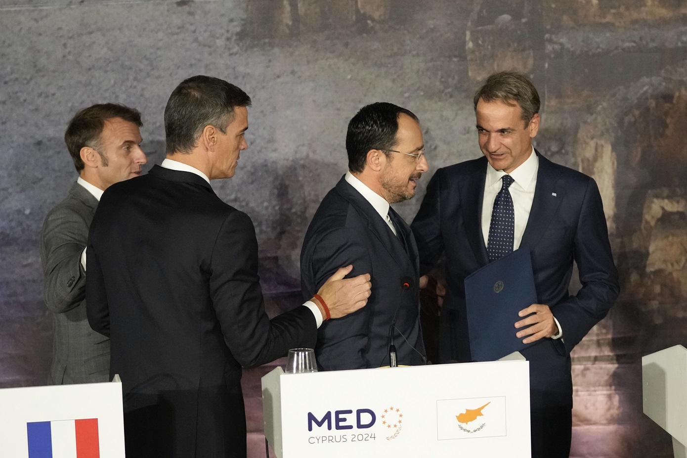 Εμείς, οι αρχηγοί κρατών και κυβερνήσεων της Κροατίας, της Κύπρου, της Γαλλίας, της Ελλάδας, της Ιταλίας, της Μάλτας, της Σλοβενίας και της Ισπανίας, καθώς και ο Υπουργός Επικρατείας και Εξωτερικών της Πορτογαλίας, συναντηθήκαμε στις 11 Οκτωβρίου 2024 στην Πάφο για την 11η Σύνοδο Κορυφής των χωρών του Νότου της ΕΕ (MED-9).