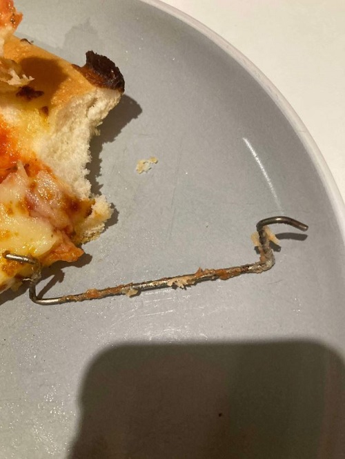 Μία γυναίκα από το Ηνωμένο Βασίλειο έμεινε σοκαρισμένη όταν ανακάλυψε ένα παράξενο μεταλλικό αντικείμενο μέσα στην πίτσα που παράγγειλε. Η Άμπερ, 24 ετών, μοιράστηκε την εμπειρία της μέσω του X, αποκαλύπτοντας το μυστήριο αντικείμενο.