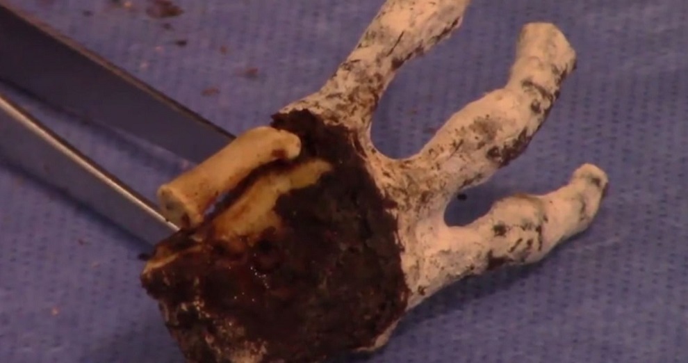 Το υποτιθέμενο «μεταλλικό εμφύτευμα» εμφανίζεται στο βίντεο να μοιάζει με ένα κομμάτι από ασημένιες, ερπετοειδείς κλίμακες, καθώς το στρέφει προς την κάμερα το χέρι του δρ Ζάλσε. Ο δημοσιογράφος Φερνάντο Κορέα Ντομίνγκεζ εξήγησε στο DailyMail.com ότι το χέρι είχε προσεκτικά επανυδατωθεί από τους γιατρούς για να αφαιρεθεί καλύτερα το «μεταλλικό εμφύτευμα».