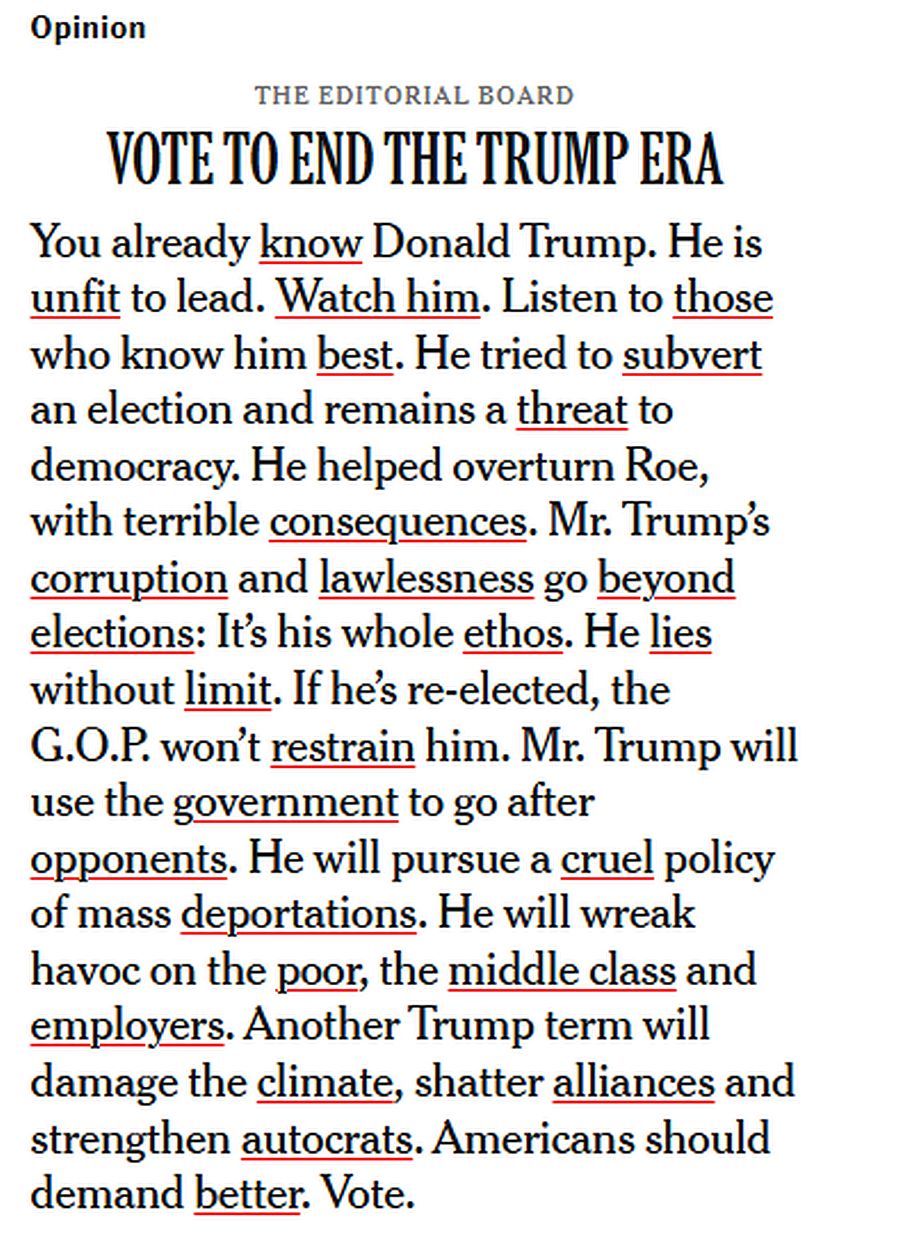 «Η διαφθορά και η ανομία του κ. Τραμπ ξεπερνούν τις εκλογές: Είναι όλο το ήθος του. Λέει ψέματα χωρίς όρια» συνεχίζουν οι New York Times.