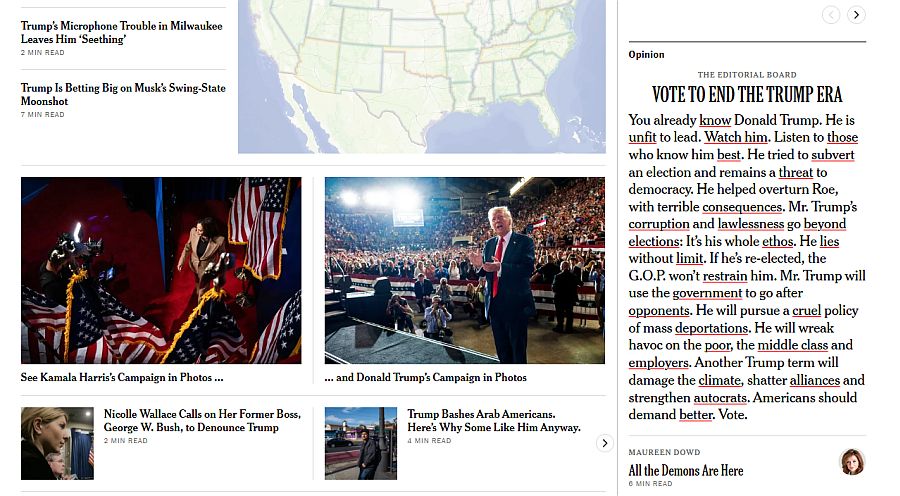 Η άλλη μεγάλη αμερικανική εφημερίδα πάντως η New York Times ουσιαστικά εντάχτηκε στην ομάδα της αντιπροέδρου του Τζο Μπάιντεν, Κάμαλα Χάρις.