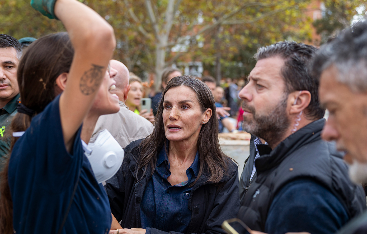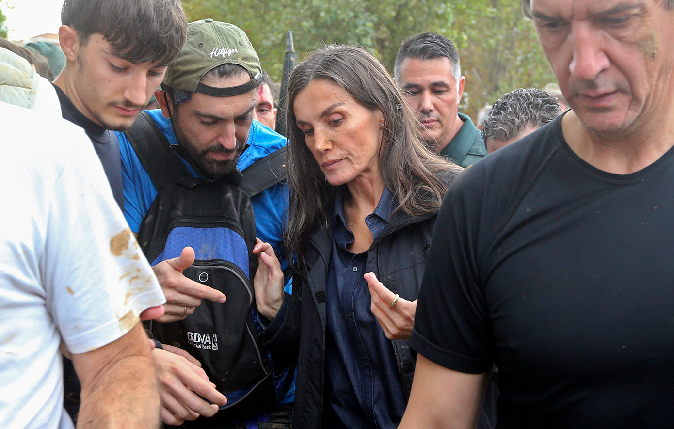 Η βασίλισσα Λετίθια υπέμεινε τις φωνές του εξαγριωμένου πλήθους, με λάσπες στο πρόσωπο και στα ρούχα της. «Εδώ πεθαίνουμε, εσένα δεν σου λείπει τίποτα», φώναζαν οι εξαγριωμένοι Ισπανοί στη βασίλισσα την ώρα που ο αριθμός των νεκρών από τις πλημμύρες μεγαλώνει αδιάκοπα.
