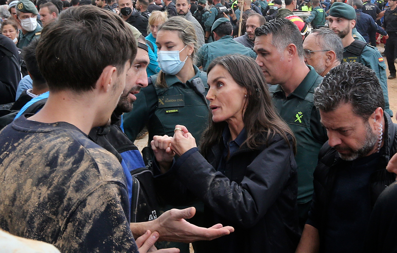 Αγανακτισμένοι και εξαγριωμένοι πολίτες επιτέθηκαν στη βασίλισσα της Ισπανίας, Λετίθια, και τον σύζυγό της, Φελίπε. Οι πληγέντες από τις φονικές πλημμύρες περικύκλωσαν την ίδια και τον βασιλιά Φελίπε, καθώς περιόδευαν στο προάστιο Παϊπόρτα της Βαλένθια, όπου τους πέταξαν λάσπες και αντικείμενα και τους φώναζαν δολοφόνους.