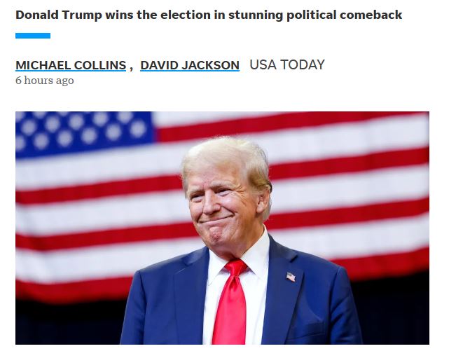 «Έπειτα από μια απίθανη και ιστορική» προεκλογική εκστρατεία, ο Ντόναλντ Τραμπ έκανε «μία από τις πιο αξιοσημείωτες επιστροφές στην πολιτική ιστορία» γράφει η εφημερίδα «USA Today».