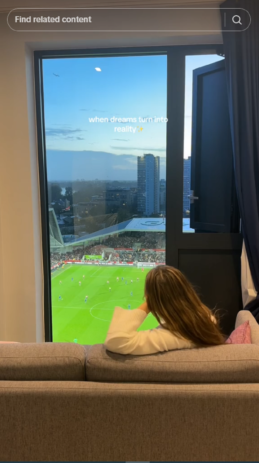 Η Noemi Oberhauser ζει ακριβώς πάνω από το «Gtech Community Stadium» της Μπρέντφορντ και από το παράθυρο διακρίνεται ολόκληρο το γήπεδο, σαν να έχει ανοίξει τηλεόραση κάποιος για να παρακολουθήσει το ματς.