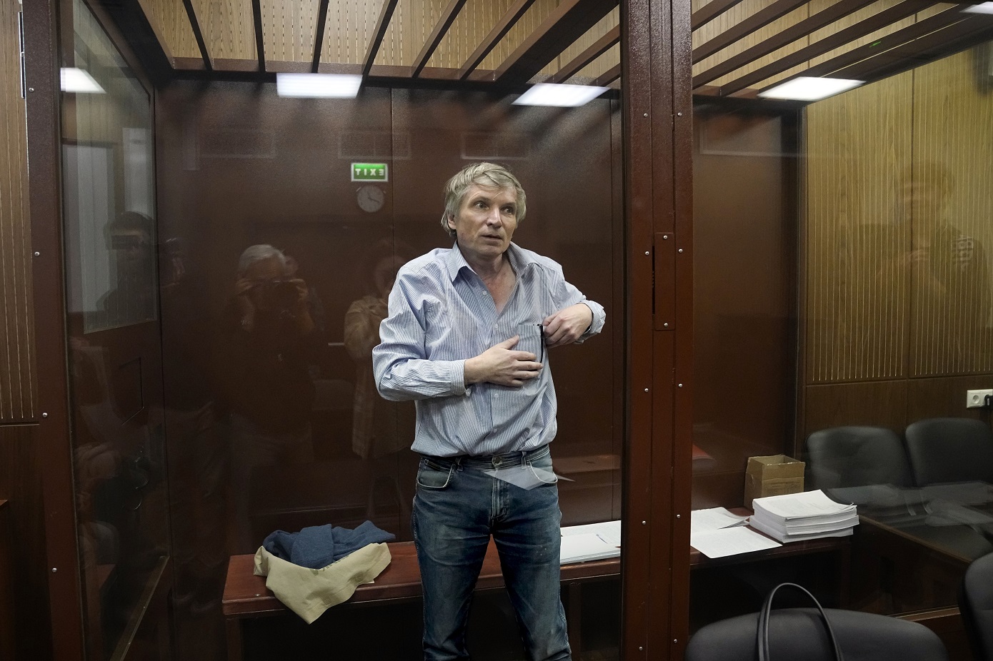 Ο Αλεξέι Γκόρινοφ, δημοτικός σύμβουλος στη Μόσχα που εκτίει ποινή φυλάκισης επτά ετών επειδή είχε καταδικάσει την εισβολή της Ρωσίας στην Ουκρανία, κατά την έναρξη της σημερινής δίκης στην οποία κατηγορείται για δικαιολόγηση της τρομοκρατίας, έκανε μια αντιπολεμική διαμαρτυρία μέσα από το κλουβί που βρίσκεται στη δικαστική αίθουσα.