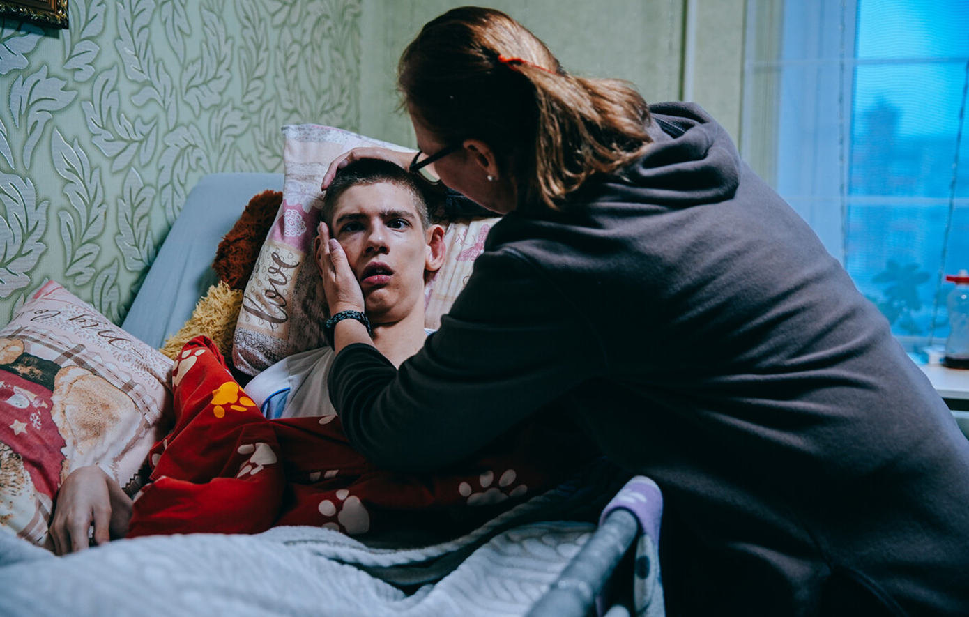 Η Λένα, μια μητέρα επίσης από το Τσερνίχιβ, είναι κωφή και φροντίζει τον γιο της με εγκεφαλική παράλυση. Μέσα από τη μαρτυρία της στον φακό της ActionAid, μοιράζεται τη δική της μάχη: «Με τον πόλεμο, οι υπηρεσίες υποστήριξης που είχαμε εξαφανίστηκαν. Δεν έχω καμία υποστήριξη για το παιδί μου πια – καμία αποκατάσταση, καμία θεραπεία. Έχουμε μείνει μόνοι μας».
