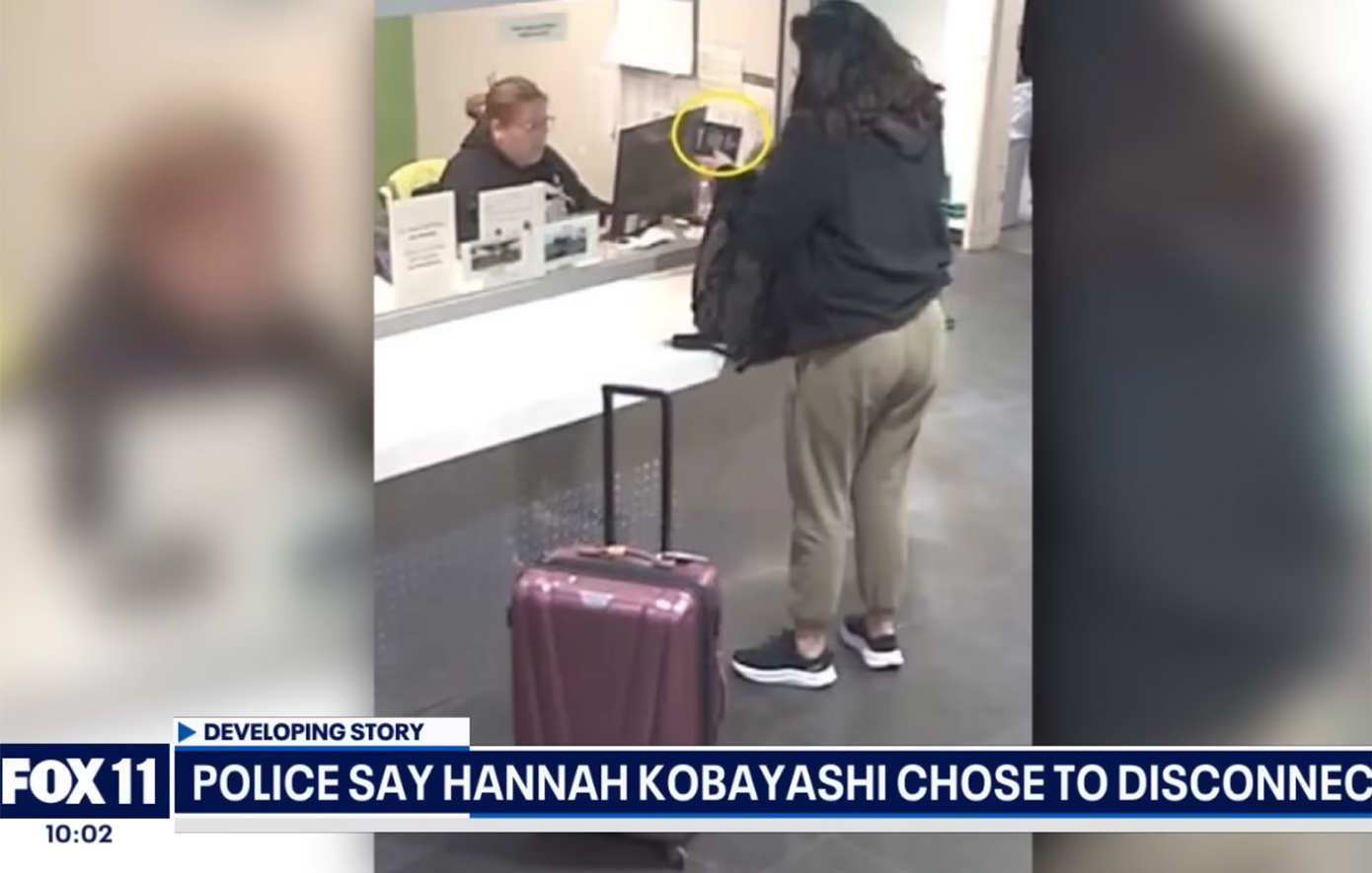 Η Κομπαγιάσι, ντυμένη με αθλητική φόρμα, φαίνεται να πληρώνει με μετρητά για το εισιτήριό της στον κεντρικό σταθμό του Λος Άντζελες, LA Union Station. Στα χέρια της κρατούσε το διαβατήριό της και αποσκευές, σύμφωνα με πλάνα που δημοσιεύτηκαν από το Fox 11 Los Angeles.