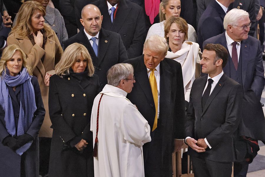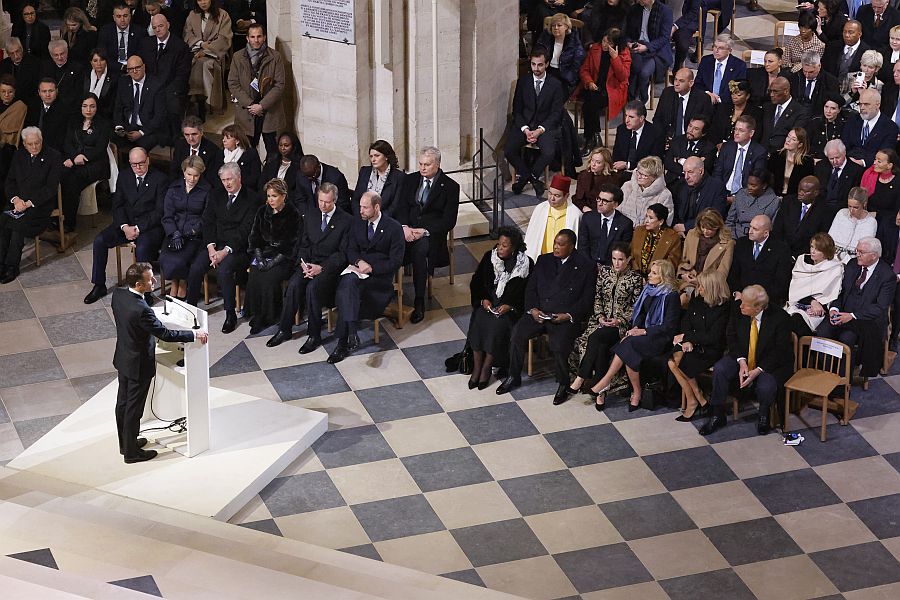 Λίγο νωρίτερα, ο Γάλλος πρόεδρος είχε υποδεχθεί θερμά μπροστά από τον καθεδρικό ναό αρχηγούς κρατών και κυβερνήσεων, εστεμμένους και εξέχουσες προσωπικότητες, για τα εγκαίνια του καθεδρικού ναού που έγιναν σε μια ιδιαιτέρως κρίσιμη για τη Γαλλία συγκυρία που βρίσκεται αντιμέτωπη με μια μεγάλη οικονομική και πολιτική κρίση.