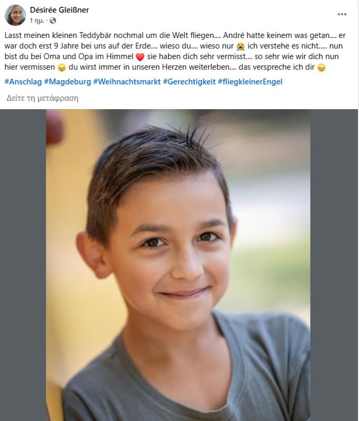 Με μια σπαρακτική ανάρτηση στο διαδίκτυο η μητέρα του André Gleißne αδυνατεί να πιστέψει πως ο μικρός της γιος δεν είναι πλέον στη ζωή.