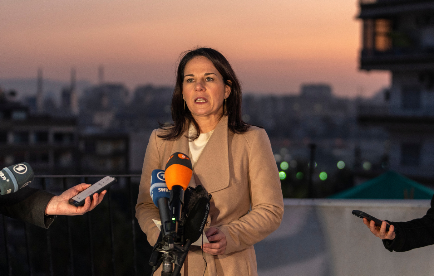 Η επίσκεψη της ευρωπαϊκής αποστολής δεν ξεκίνησε με τον καλύτερο τρόπο, καθώς ο τζιχαντιστής ηγέτης αλ Τζολάνι υποδέχτηκε τη γερμανίδα υπουργό Εξωτερικών Αναλένα Μπέρμποκ και τον γάλλο ομόλογό της Ζαν Νοέλ Μπαρό, αλλά χαιρέτησε μόνο τον άνδρα.